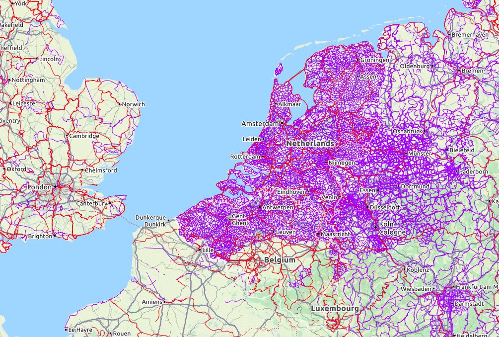 This is great for those countries that have invested, but for those of us in the UK (with the exception of a very small number of cities) the situation is much worse than it looks. The red lines shown on the UK map are the Sustrans network. I'm a great supporter of Sustrans, but I would have to admit that realistically these paths are mostly not dedicated cycle infrastructure, but are carefully chosen quiet routes that are not necessarily the quickest route between places - so great for recreation, but often not ideal commuter infrastructure.